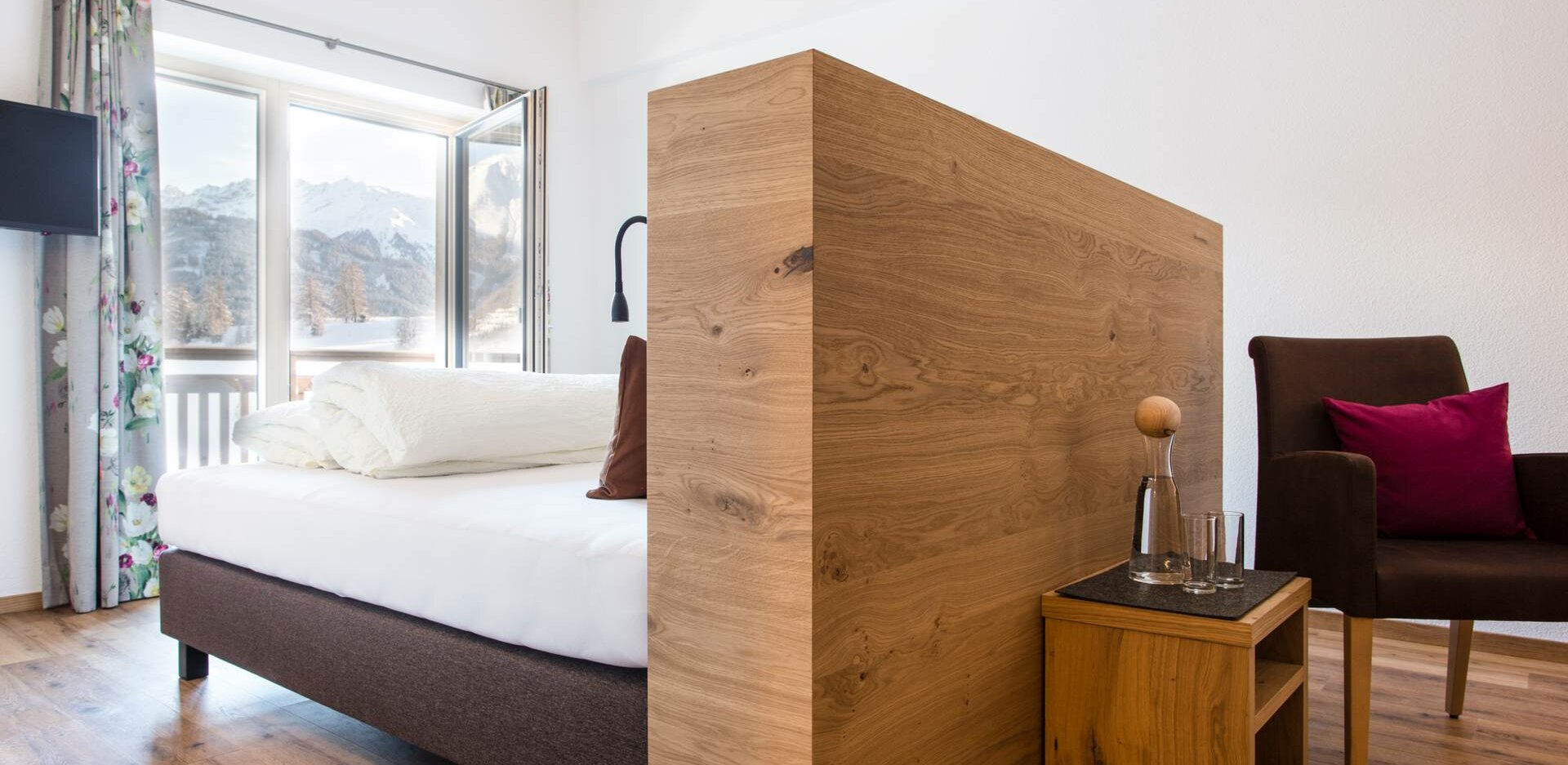 Let your eyes wander over the magnificent landscape directly from the bed. Enjoy freedom and comfort in the snug ambience of your suite featuring natural materials and warm colours.